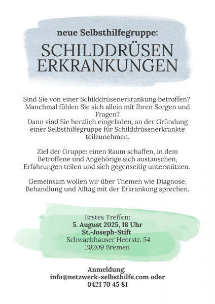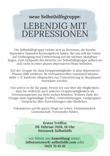 - Moderation: In der Gründungsphase besteht bei Bedarf die Möglichkeit, dass wir die ersten Gruppentreffen begleiten.